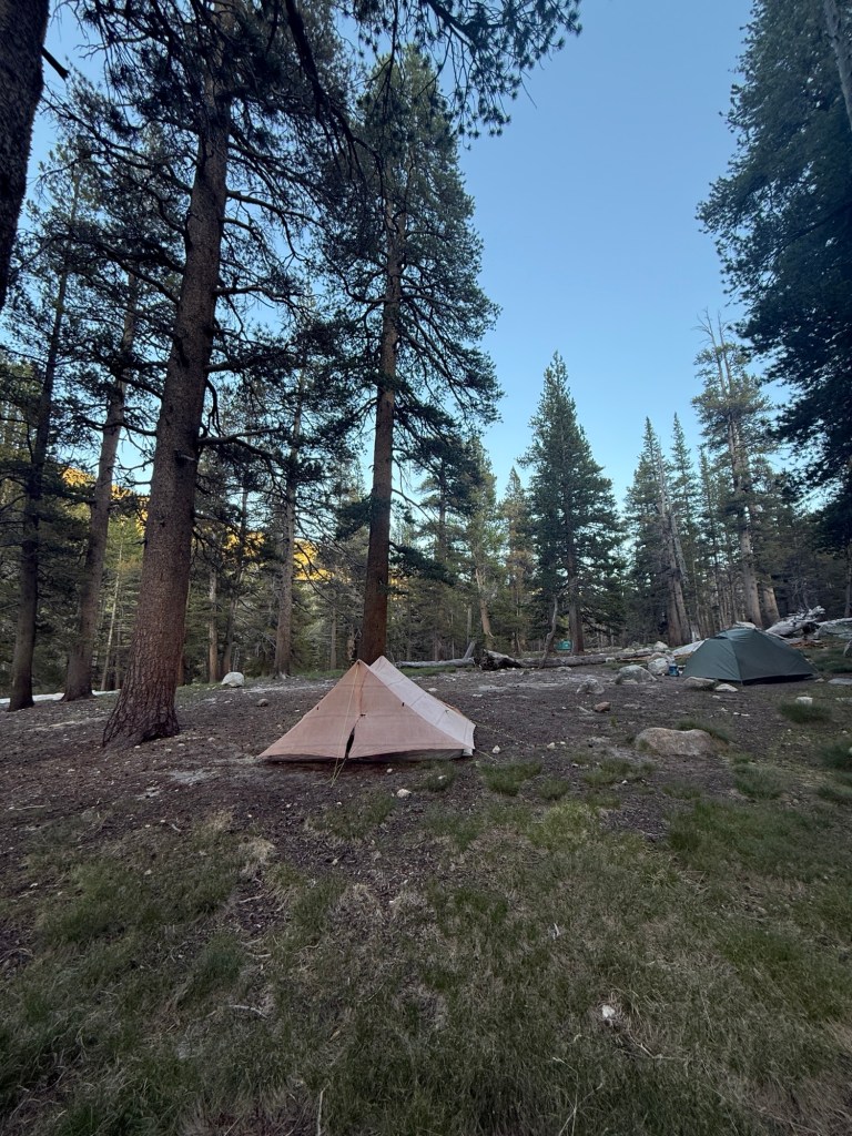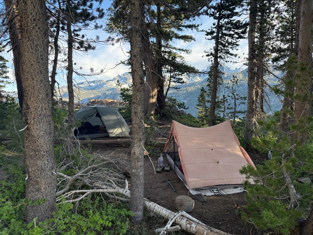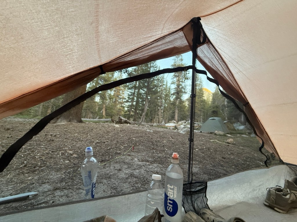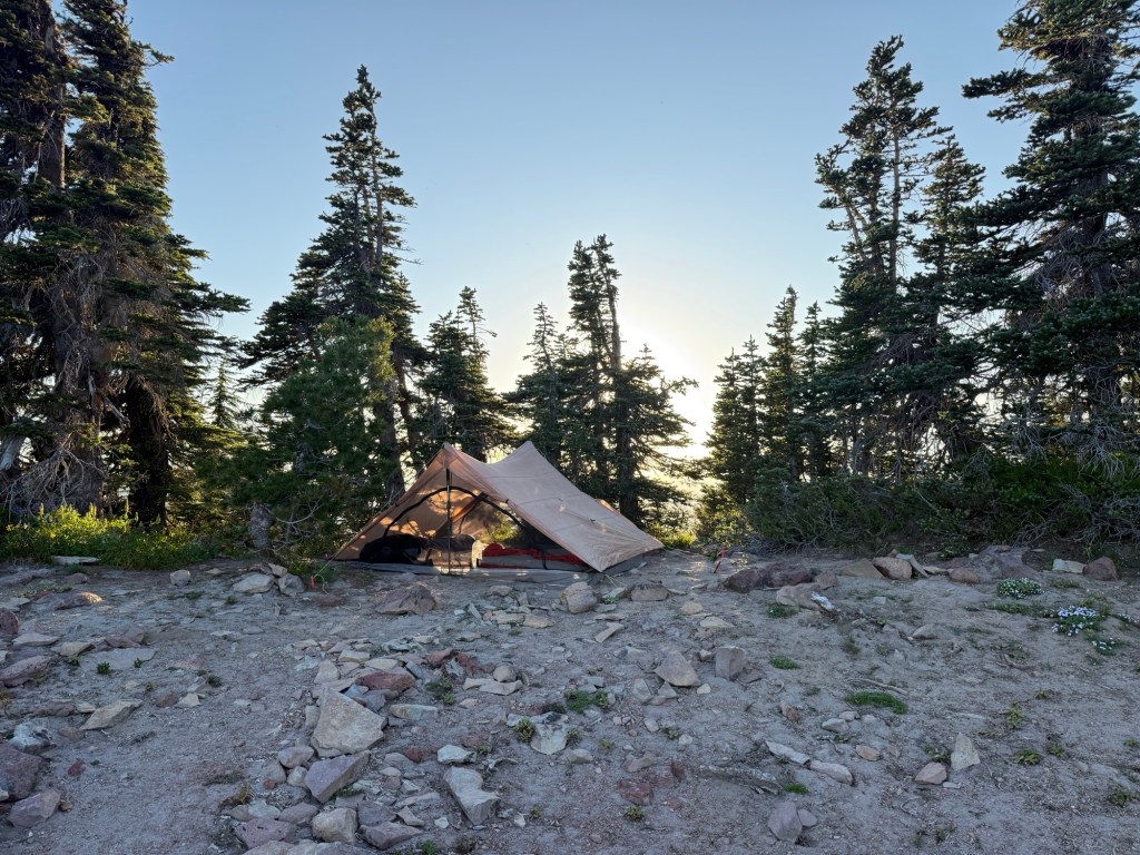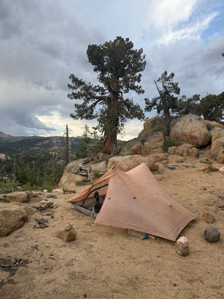 With a full heavy bag again, 2 filled water bottles, and 20 miles already done for the day I start eying camp sites. As I climb to windy pass it’s a beautiful spot, eye level looking at a ridge and overlooking a valley. Nice but absolutely windy. I drop down another half mile between the two passes and I set up my tent.