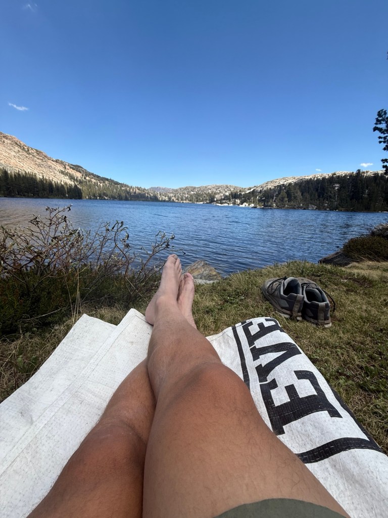 A few miles back up the trail I run into more hikers coming down. We chitchat and smile and I truly enjoyed the hike back up. For the first time I don’t have a hiking goal, now it’s just a long walk back to the metaphorical car of life. Headphones in, volume on as high as possible, I charge back uphill 6 miles to the lake and gather my stuff. I stop and chat with an Italian SOBO hiker who tells me it’s harder than he thought. We talk for a few minutes and I reassure him it’s worth it. I tell him no matter what keep going, and then I say goodbye.