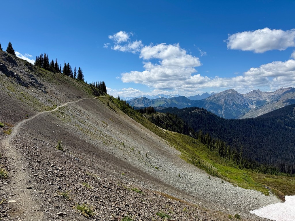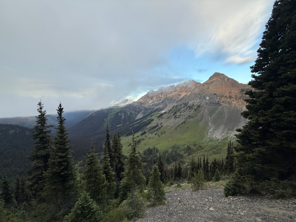 I wake up at 4:30 and pack up. Under 10 minutes and I’m on the walk, it’s all uphill today to get back to Harts pass and it’s the perfect temperature. As I climb the first ridge it’s covered in clouds, I continue to walk through them and get eye level with them. As they blow around I can feel the moisture being dropped off.