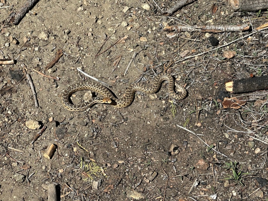 We get moving again and Dallas is ahead of me. I see them stopped staring and then get walking again…. Weird, I get to where they were and see what they were staring at. A nice old snake standing at attention. I swing at it with my trekking pole and high step it out of there. “WTF Dallas!” I yell. “Yeah it was kindve pissed off at me.” You’re killing me smalls. I think it was a gopher snake, but I didn’t see it good enough.