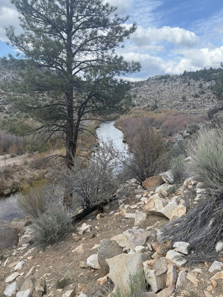 I take the final turn and see a wide open meadow to the main road and a bridge. Stealthy is no where to be found to pick me up. There’s a guy fly fishing here, he says the golden trout are on fire here.