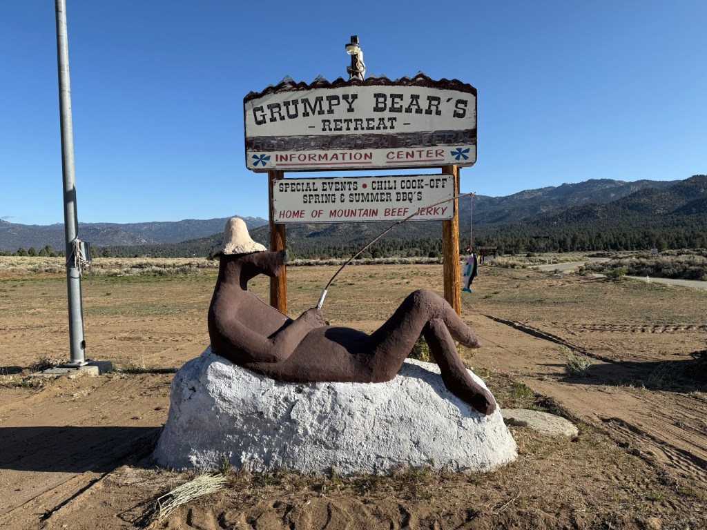 We head up the road to Chimney Creek Campsite and drop that gentleman off. He was heading north from there. We get back on the road and 20 minutes later we’re pulling into Grumpy Bears where we grab food and hang out for a bit.