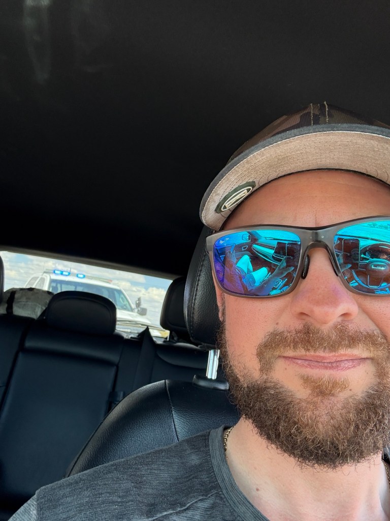 Another hour goes by and we’re cruising, it’s a one lane highway. The speed limit is 70 and cars are passing us and we’re passing cars. We get towards the famous Area 51 section and a cop flips on the lights and pulls me over.