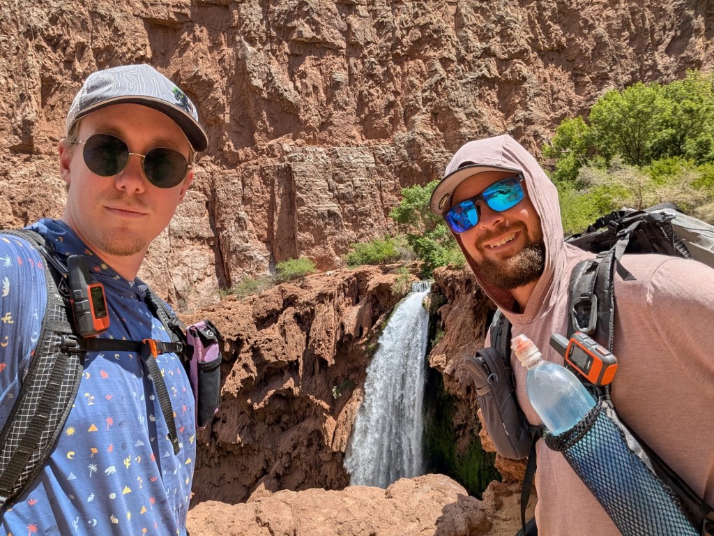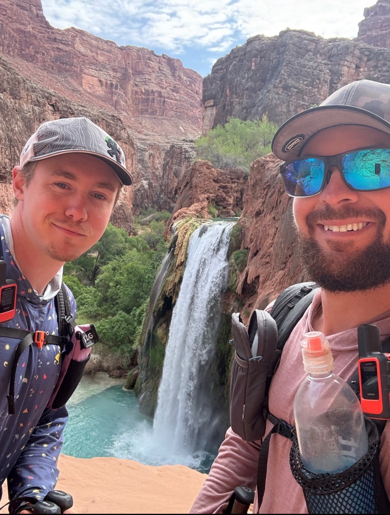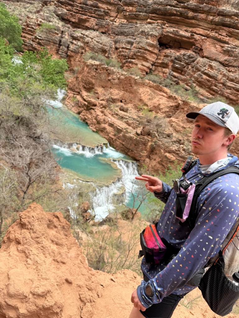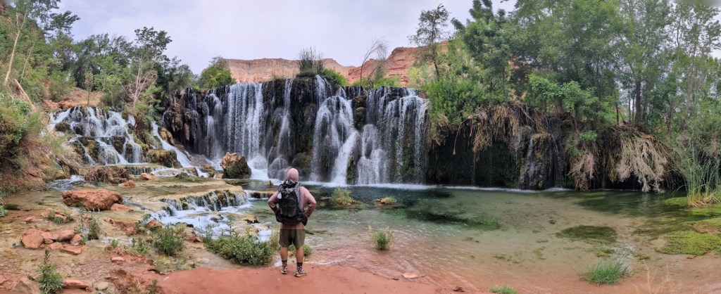 We get through the village and to the first few waterfalls. Underwhelming for us coming from the wilderness, we turn the corner to Havasu falls and Seven smiles. I film his reaction and then take my own look. The 4th time I’ve seen this view after the hike. Still amazing to me.