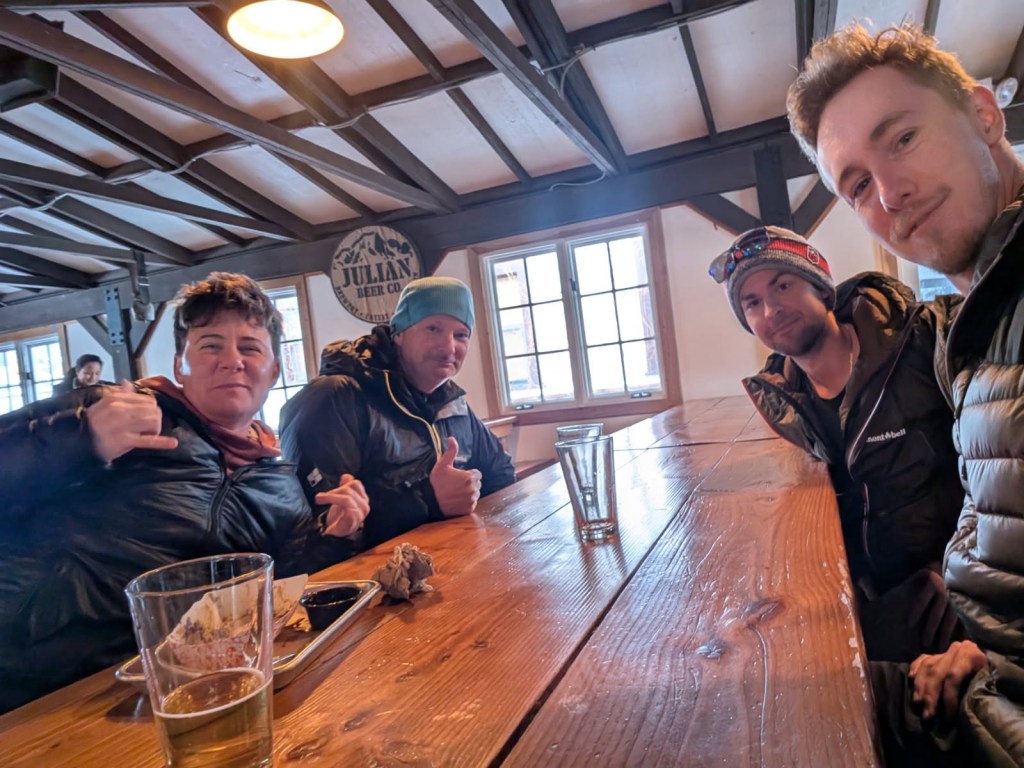 As we’re having lunch Wolf Slayer walks in. Takes their gear off and kicks it too, another 35 minutes go by and Seven and Dallas roll in. We all chill for a minute and then start the decent to camp.