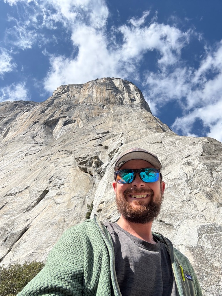 I meet up with Greenhorn as he’s fishing, he says he’s not having any luck. We can go start to explore. First we head up to see El Capitan from below. And holy shit is it wild, we head to the bottom of the rock face to see if we can get up it. Yeah nah yeah no. It’s even more wow when you get up to the rock wall and start to climb up.