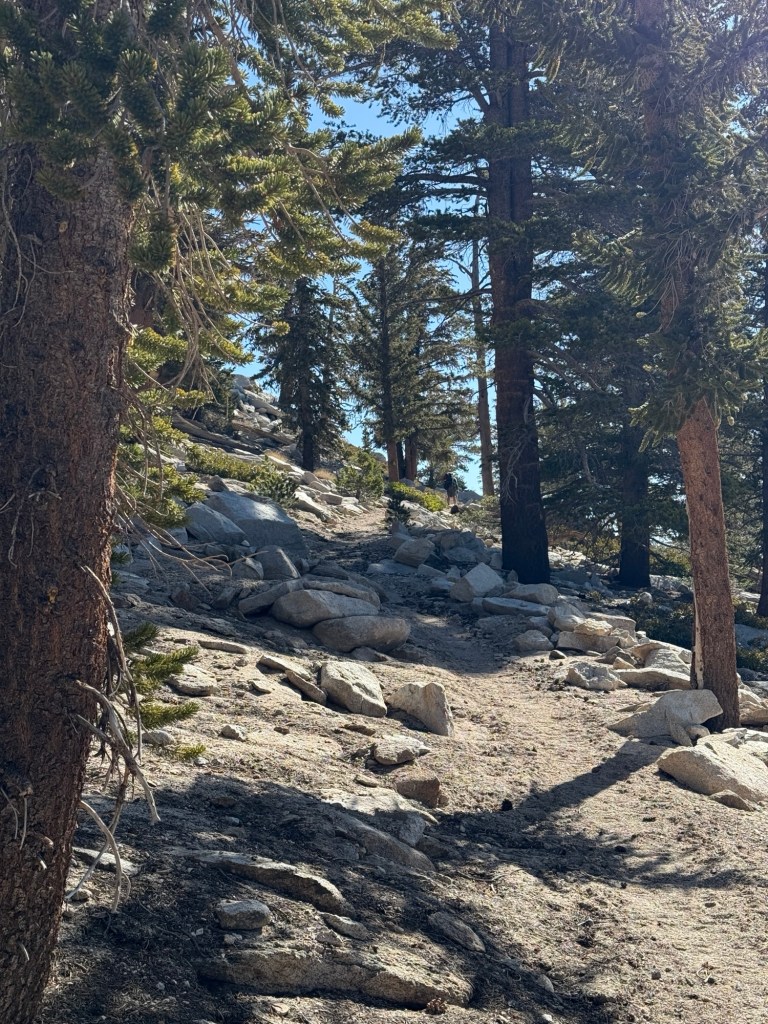It starts off in a beautiful forest with cliffs of granite around us. I stop for my first break and Seal walks up behind me. He says “hey how’s it going” and we start hiking together, his plans the same as mine today. We go 3 miles and sit for a bit, the altitude has us both breathing heavy.