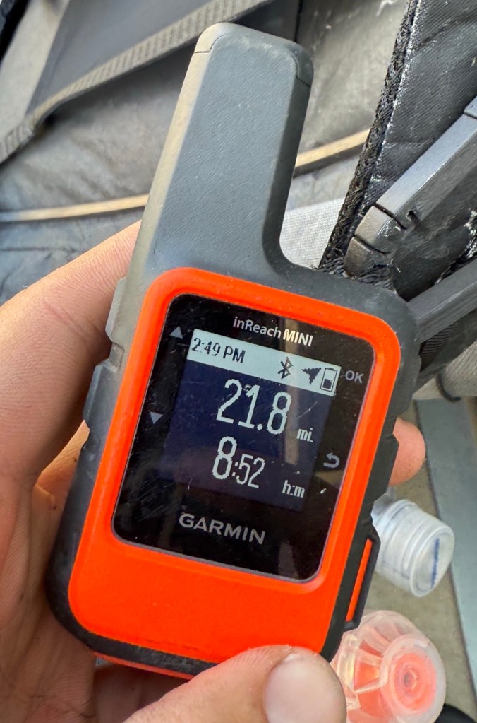 It was a total slog, I’m cooked at this point and I send Seven a Garmin message who’s behind me “solid camp site at mile 674 I’m stopping here.”
