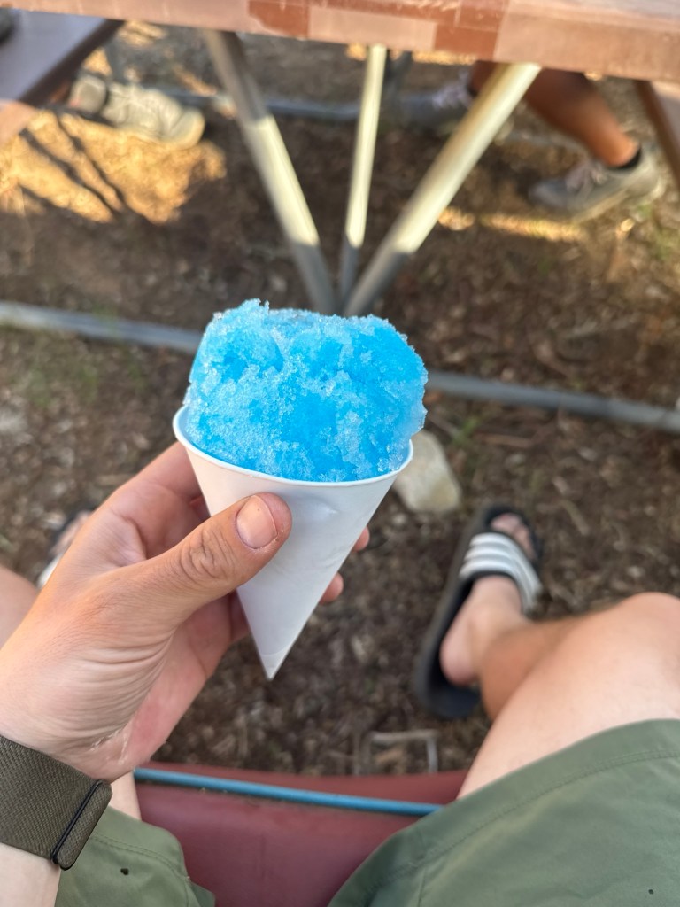 As we talk Farmer John decides to make snow cones for the hikers already here. Flamingo, Long Legs, two folks from Germany and a few others. He slides me a blue raspberry one and it was perfect in the 4PM sun. I crush my snow cone and then jump into a hot shower. Will say, this guys property had the best water pressure I have seen since landing in California. Was like the Seinfeld episode when they get black market shower heads.