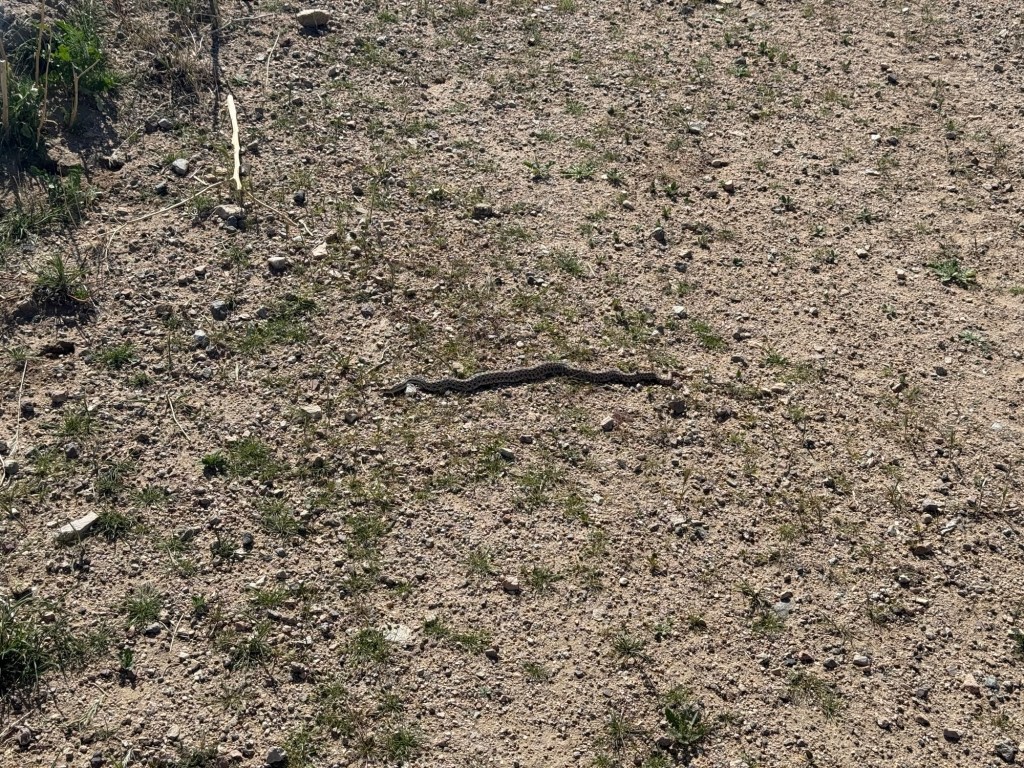 As I get to that first water source it’s flowing nicely, I was down low in the valley and the bugs were bad. I didn’t stay long, I literally walked over it and kept going. Right back up hill again. After a bit more I finally hit the last water source and fill up 3 liters to make sure I have enough. I hike another mile and see a beautiful gopher snake.