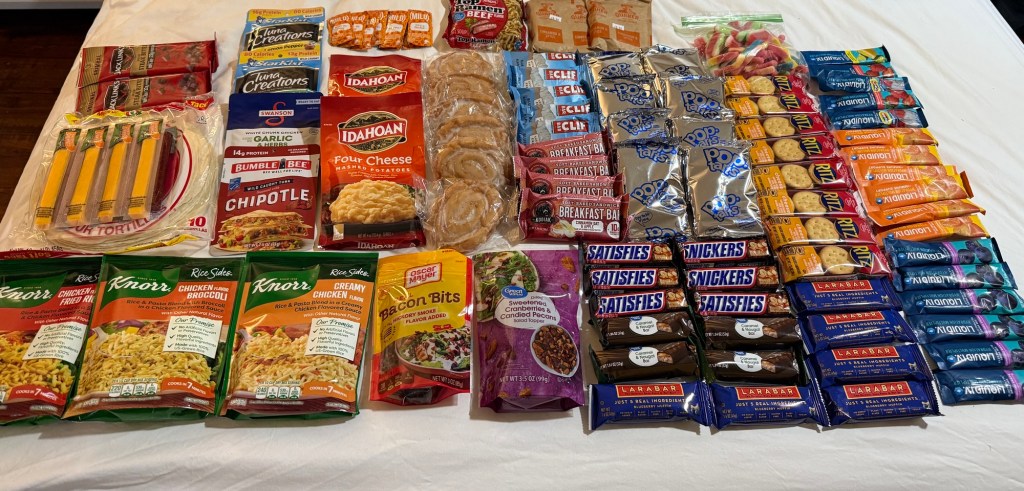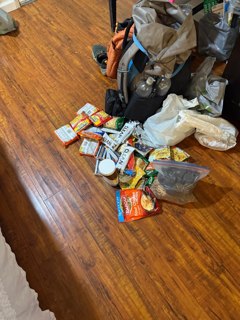 On the way back from Walmart I stop at Luna Mexicana to grab a 4 pack of tacos for the walk and then head home for the night. I walk in and Tardys got his stuff out. His resupplies are always about calorie numbers. He packed out 39 cookies from a McDonald’s that time.