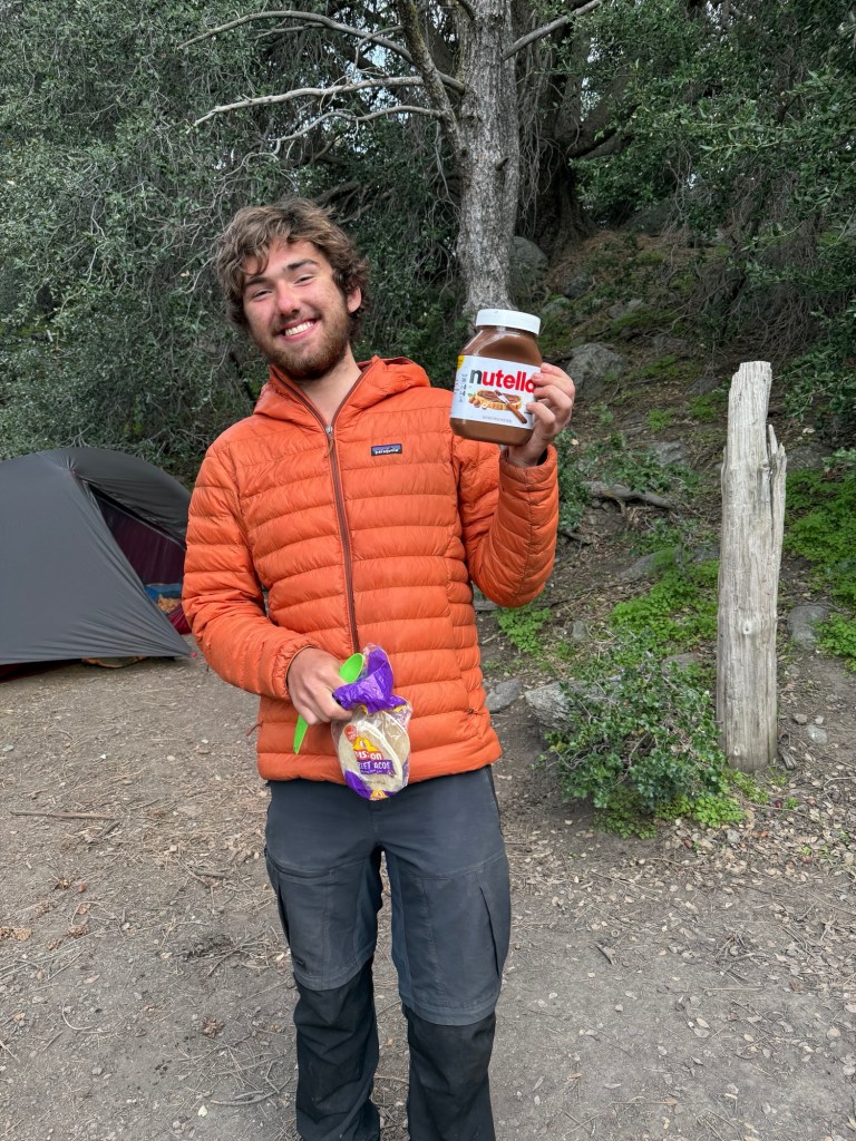 I pitch my tent in a forest of pine trees and listen to the wind howl. The moons nice and bright, it’s full in a few days. Everyone else arrives to camp and we sit down for my birthday dinner. I crush the usual ramen, pasta and rice.