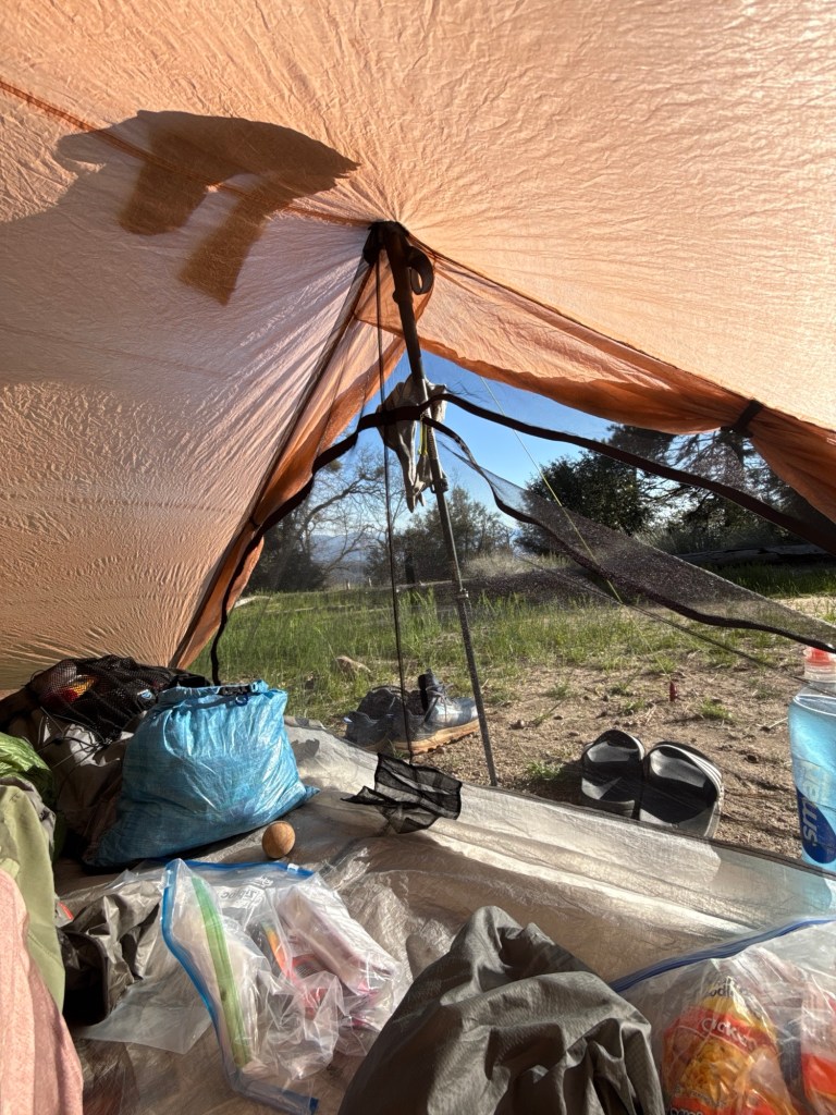 As the suns setting it’s a beauty. I enjoy it outside my tent alone, really soak it in. Tried to wake up Coffee Break but he was stone cold out. After that I head in to my tent to get comfy and check the map for tomorrow. I think it’s 20.1 miles to Walker Pass. Stealthy said he might be there with his camper van doing trail magic. I had almost no service today though, so I’ll keep a positive hope for that! Nice.