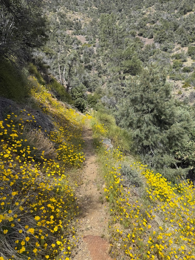 As I get between the two water sources I run into crews doing trail maintenance. All volunteers. I ask them how it’s going and they tell me that they have been out clearing brush each weekend for the last three weeks. I respond that it is much appreciated and show the person my legs and how cut up they are. We chat for a few moments about the upcoming section and we discuss the rampant spread of poodle dog bush after the recent fires. They warn me about a stretch of poison oak for about 4 miles ahead. Sweet will keep my eyes open.